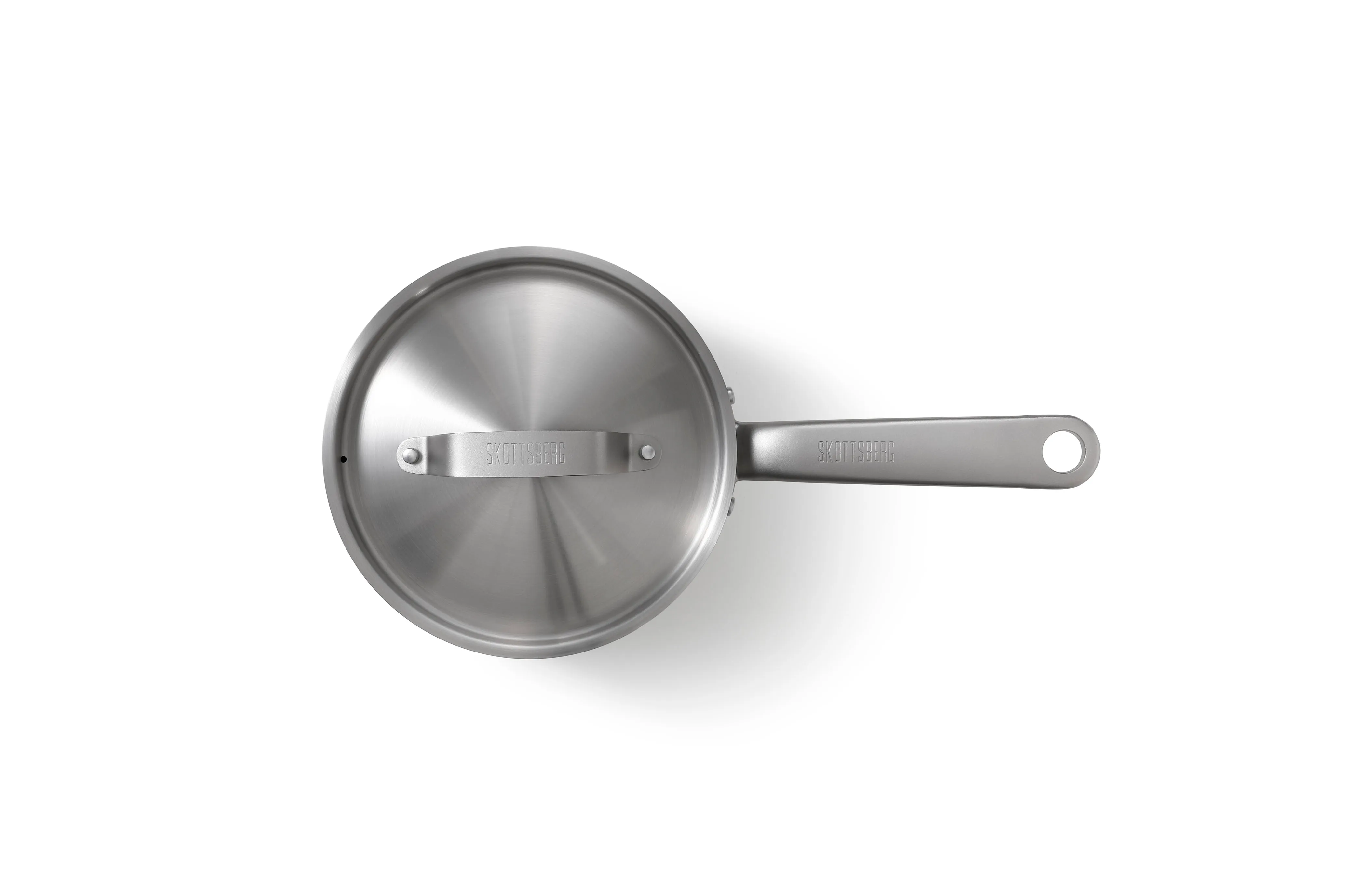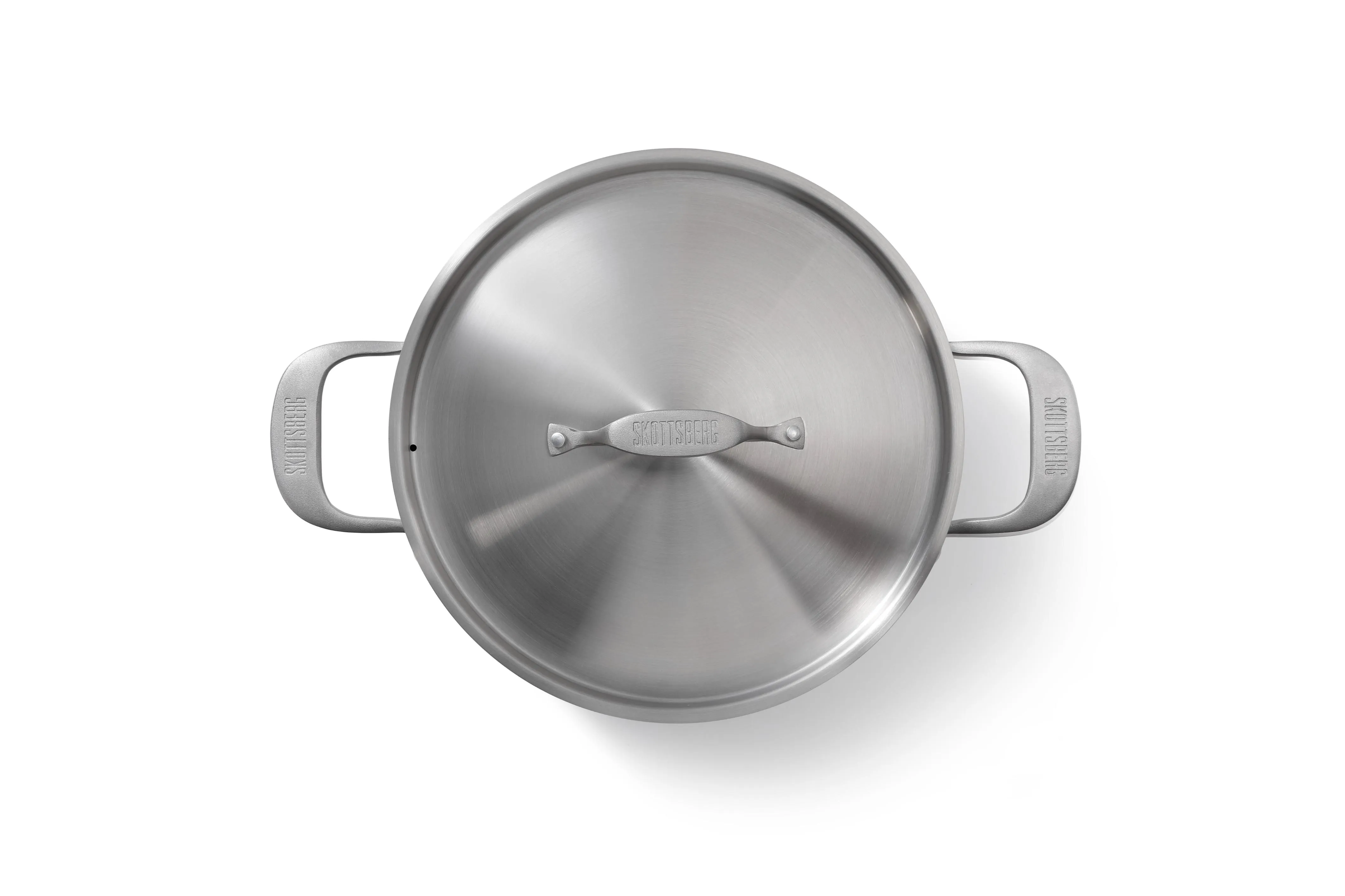 All SKOTTSBERG® pots and pans are distinguished by their durability. These stainless-steel pans are no exception. If you take good care of them, you can include them in your inheritance. It's a tri-ply pan. That means it is made of three different layers of metal. Sandwiched between two layers of high-quality stainless steel is a layer of aluminium, a metal that conducts heat extremely well. As a result, the pan not only heats up very quickly, but the heat is also evenly distributed on all sides of the pan. And because the three layers are together no less than 2.5 millimetres thick, it will not warp.